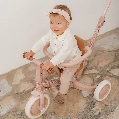 Laikas leistis į mažus, švelnius nuotykius! Šis dailus, švelniai rožinis 4-in-1 triratukas tampa nuostabiu pirmuoju vaiko transportu. Minkštos spalvos, derančios rudos detalės ir patogus dizainas padeda mažyliui žingsnis po žingsnio atrasti važiavimo džiaugsmą – visiškai žaismingai ir saugiai. Jei mažylis dar nenori ar nepajėgia minti pats, tėvams į pagalbą ateina patogi stūmimo rankena. Saugos diržas ir apsauginis lankas užtikrina užtikrintą kelionę, o kai jų nebereikia, jie lengvai nuimami. O pati magija? Triratukas akimirksniu virsta balansiniu dviratuku! Pedalų nereikia? Jie tiesiog pasislepia po balneliu, kad viskas būtų tvarkinga ir po ranka. Lengvas, kompaktiškas ir reguliuojamas – idealiai pritaikytas vaikams maždaug nuo 1 iki 3 metų.