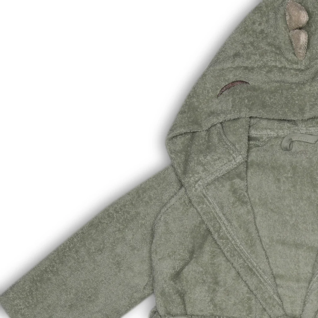 Minkštas ir jaukus chalatas – puikus pasirinkimas po maudynių ar rytais namuose. Pagamintas iš 100 % ekologiškos medvilnės kilpinio audinio, jis švelniai apgaubia ir greitai sugeria drėgmę. Chalatas turi siuvinėtą gyvūno veiduką ir žaismingas ausytes ant gobtuvo, todėl mažylio maudynių rutina taps dar smagesnė.