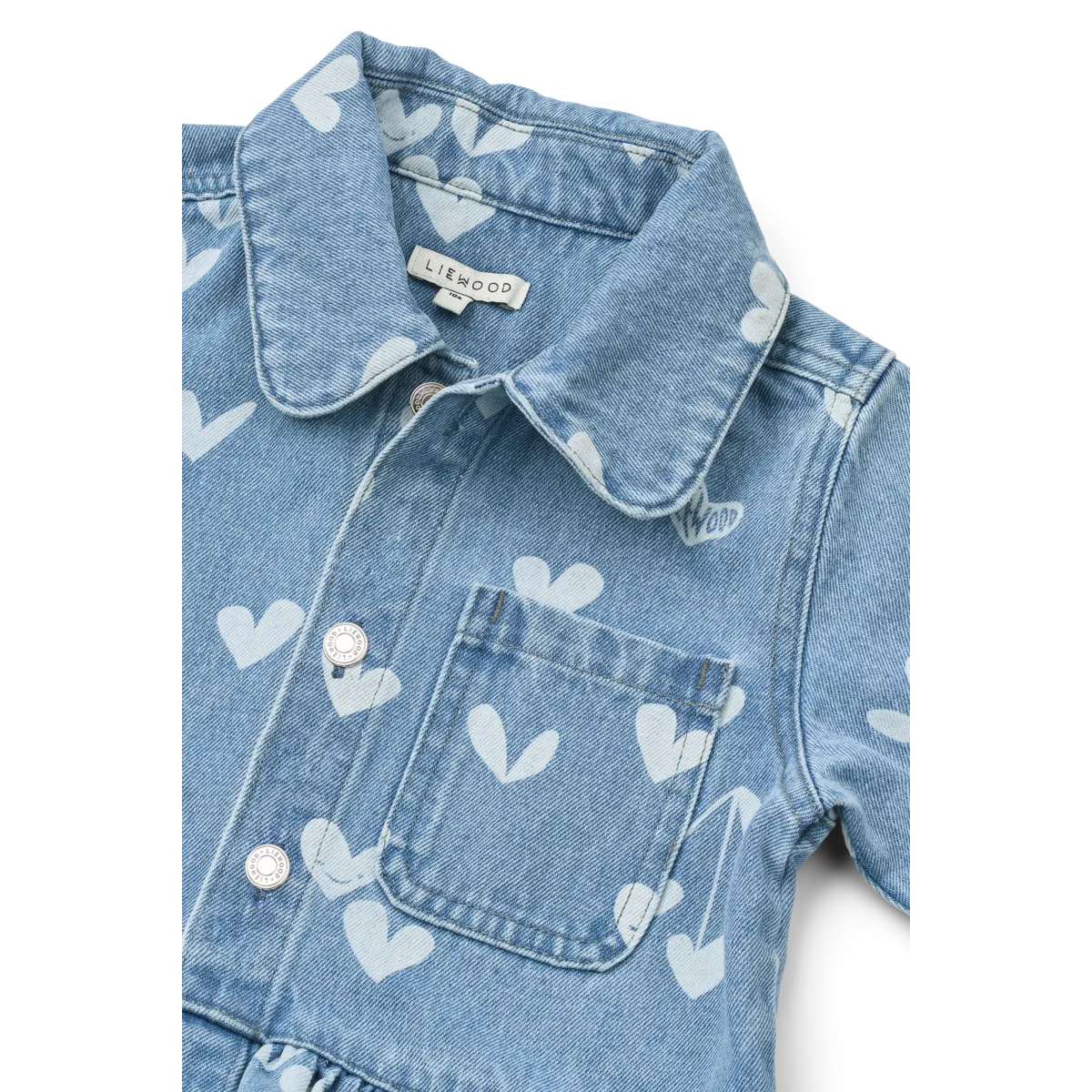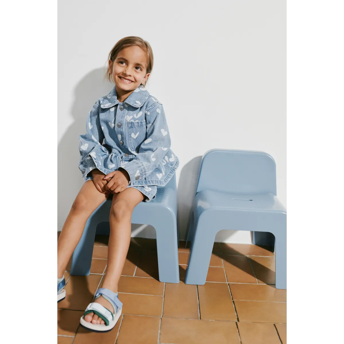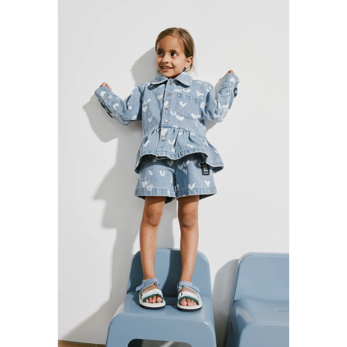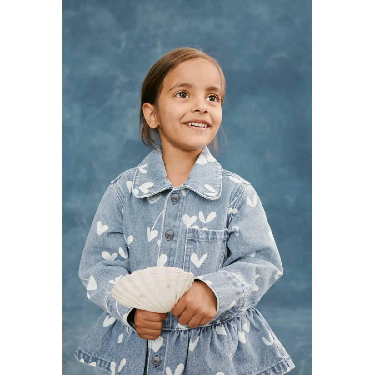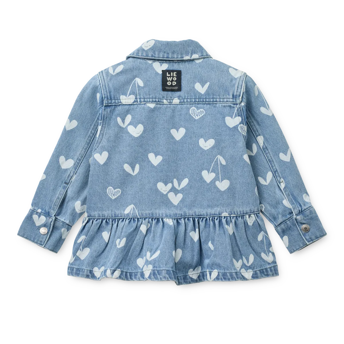 Klasikinis džinsinis švarkelis su žaismingu raštu ir raukiniais apačioje, KENZA pasiūti iš patogios, struktūruotos medvilnės ir suteikia akcentą bet kokiai aprangai.