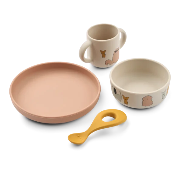 Visi mėgstamiausi indai – viename rinkinyje! Silikoninis indų komplektas sukurtas mažylių pirmiesiems maisto atradimams. Patvarus, nedūžtantis ir lengvai plaunamas indaplovėje, jis taps nepakeičiamu kasdieniu palydovu prie bendro šeimos stalo.