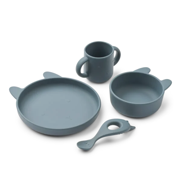 Visi mėgstamiausi indai – viename rinkinyje! Silikoninis indų komplektas sukurtas mažylių pirmiesiems maisto atradimams. Patvarus, nedūžtantis ir lengvai plaunamas indaplovėje, jis taps nepakeičiamu kasdieniu palydovu prie bendro šeimos stalo.