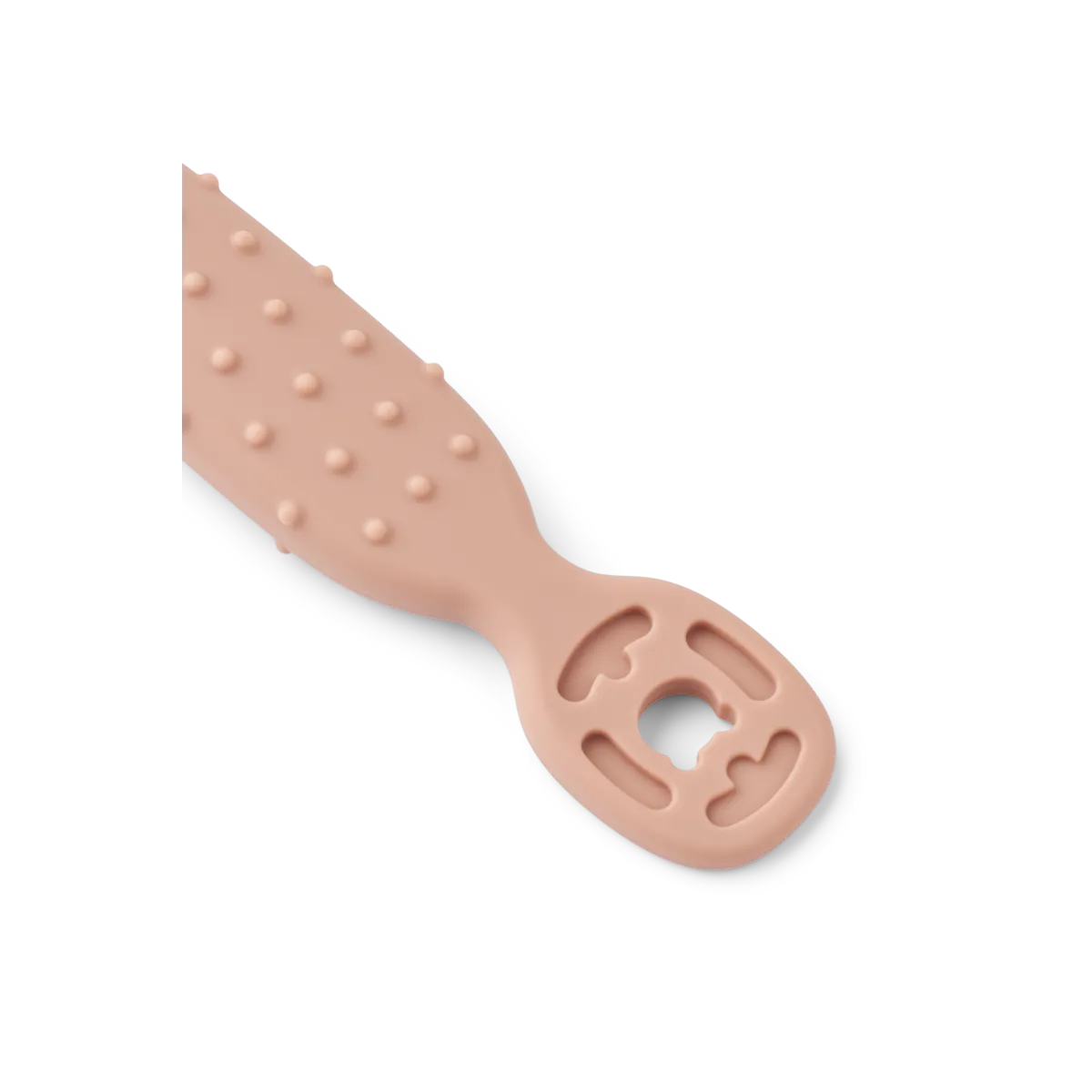 Šaukšteliai ne tik skatina savarankiškumą, bet ir padeda lavinti smulkiąją motoriką bei pojūčius. Jie švelnūs dantenoms ir puikiai tinka pirmiesiems valgymo bandymams.