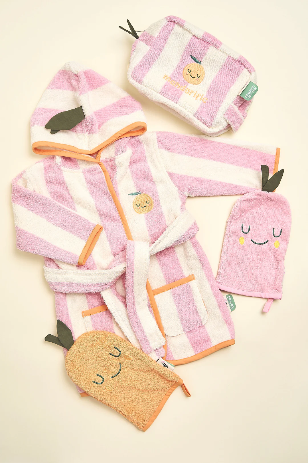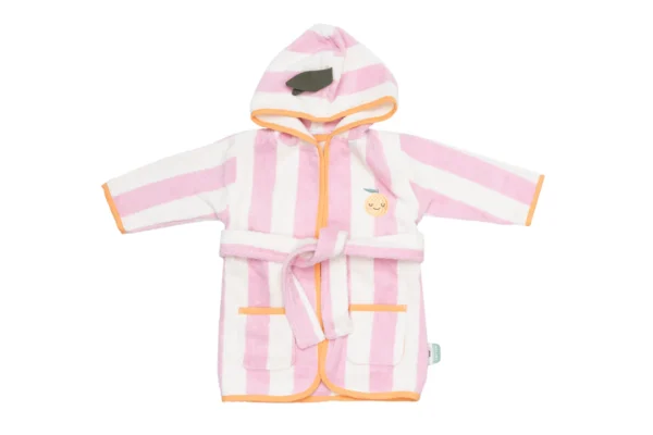 Minkštas ir jaukus chalatas, kuris po maudynių ar baseino taps nepakeičiamu mažylio palydovu. Pagamintas iš 100 % ekologiškos medvilnės ir frotinio audinio, jis švelniai priglunda prie odos, sušildo ir leidžia jaustis patogiai. Žaismingas gobtuvas ne tik prideda žavesio, bet ir saugo mažą galvytę nuo šalčio.