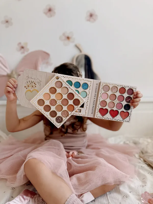 Mažoms svajotojoms ir kūrėjoms – pirmoji makiažo paletė, kupina spalvų ir blizgesio! Net 50 akių šešėlių atspalvių leis vaikui išlaisvinti fantaziją ir kurti vis naujus įvaizdžius. Lengvai naudojama ir patogi nešiotis – paletėje yra veidrodėlis bei mini teptukas.
