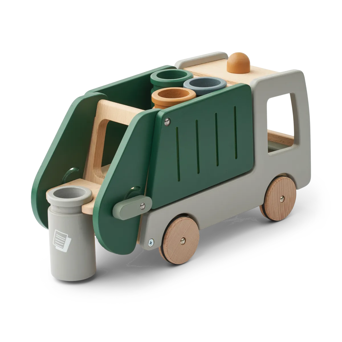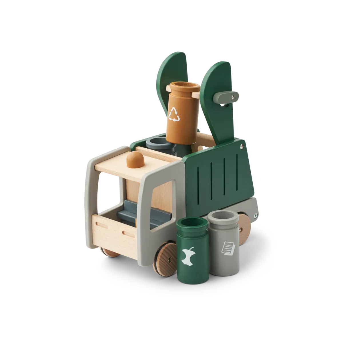 Edukacinis medinis perdirbimo sunkvežimis kviečia vaikus mokytis rūšiuoti atliekas ir rūpintis gamta per žaidimą. Sunkvežimis turi daugybę interaktyvių detalių – vaikai gali pakelti konteinerius, ištuštinti juos į krovininę dalį, o pasvėrę ją, pamatyti net variklį! Šis žaislas lavina rankų ir akių koordinaciją, loginį mąstymą bei ugdo atsakomybės jausmą už aplinką.