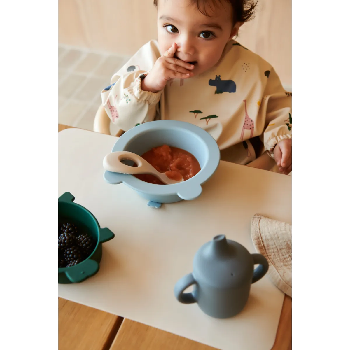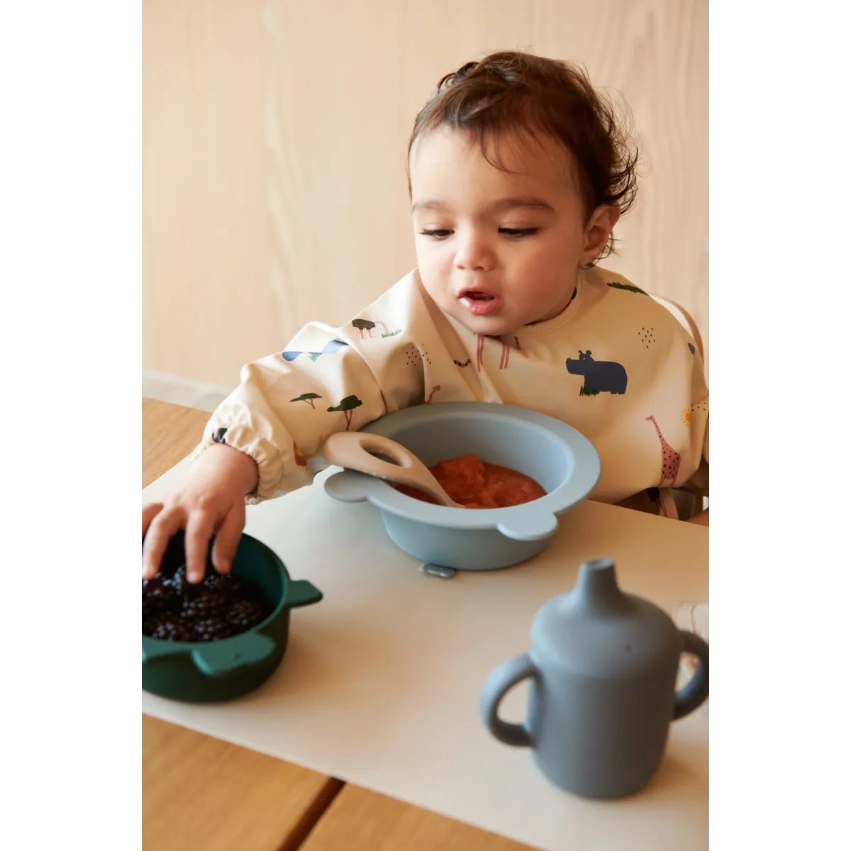 Minkšti ir malonūs liesti silikoniniai dubenėliai pavers kasdienius valgymus linksmesniais. Jie pagaminti iš 100 % patvaraus,  silikono, todėl puikiai tinka mažiesiems, pradedantiems ragauti pirmuosius tyrelių ar košių kąsnelius. Vėliau šie dubenėliai taps puikiu pasirinkimu mažiems užkandžiams ar skanėstams. Žaismingos gyvūnų detalės suteikia stalo serviravimui džiaugsmo ir spalvų.