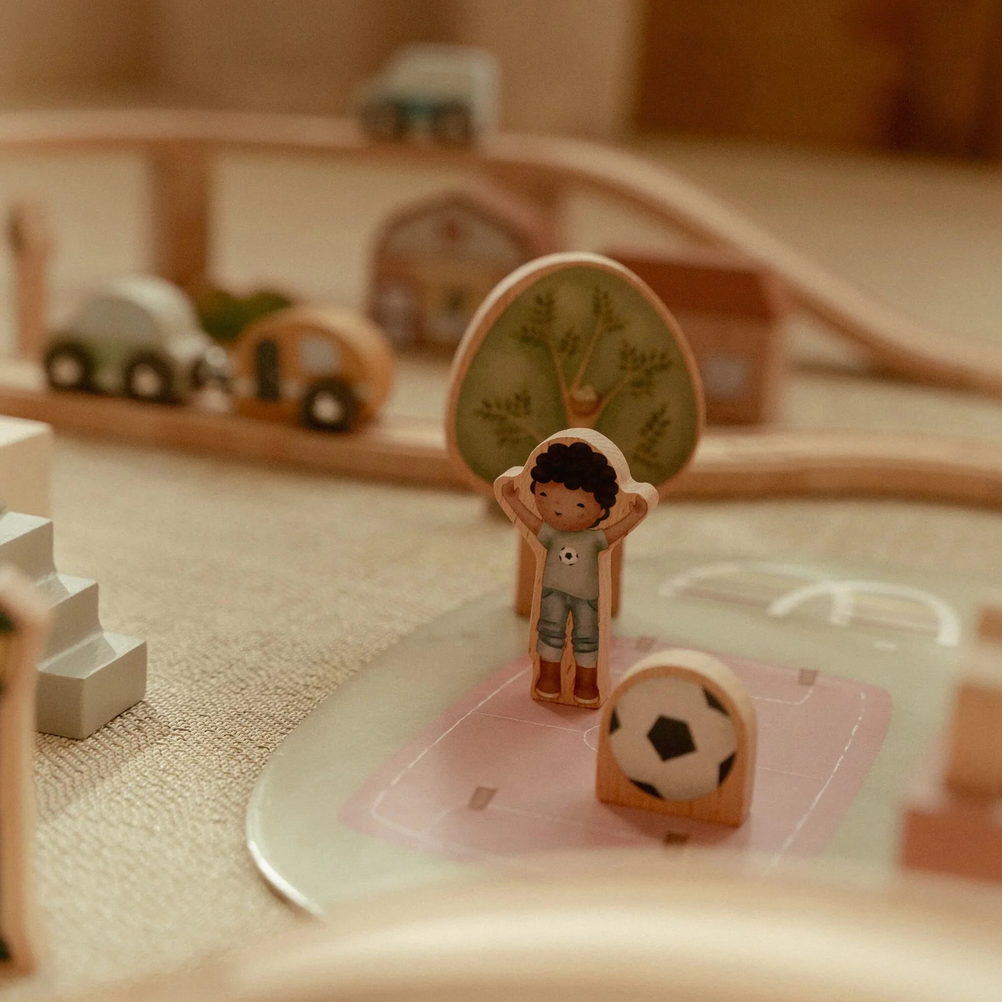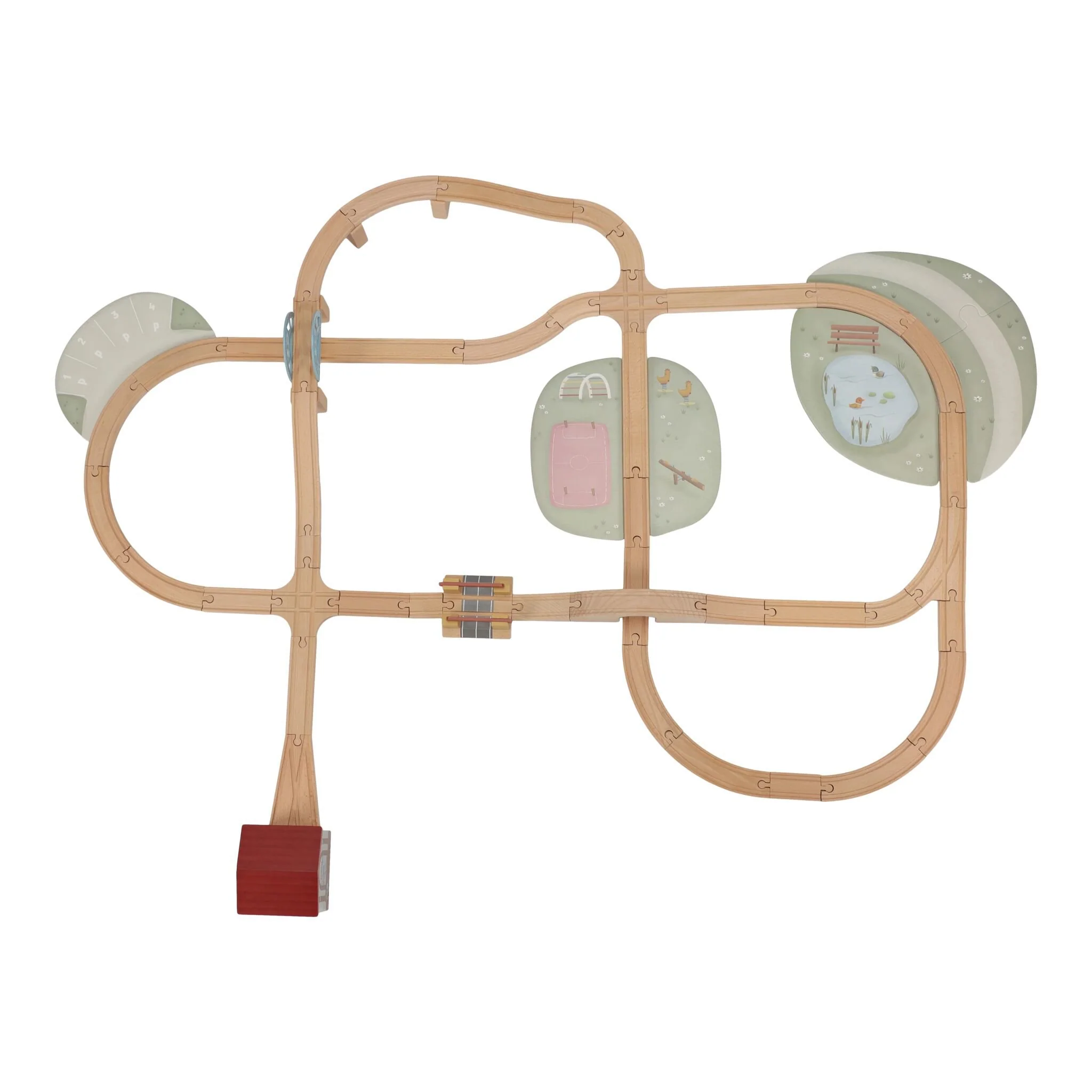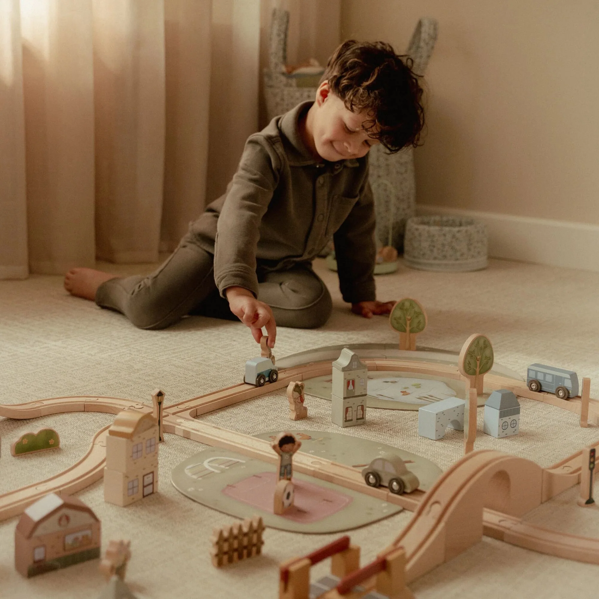 Leisk mažajam kūrėjui statyti savo nuostabų pasaulį su šiuo įspūdingu mediniu traukinių rinkiniu. Tai magiška miesto ir kelionių visata, kurioje traukiniai dunda per tiltus, stoja stotyse, užsuka į miestą ir rieda pro medžius bei eismo ženklus. Kiekviena diena čia gali būti vis kitokia!