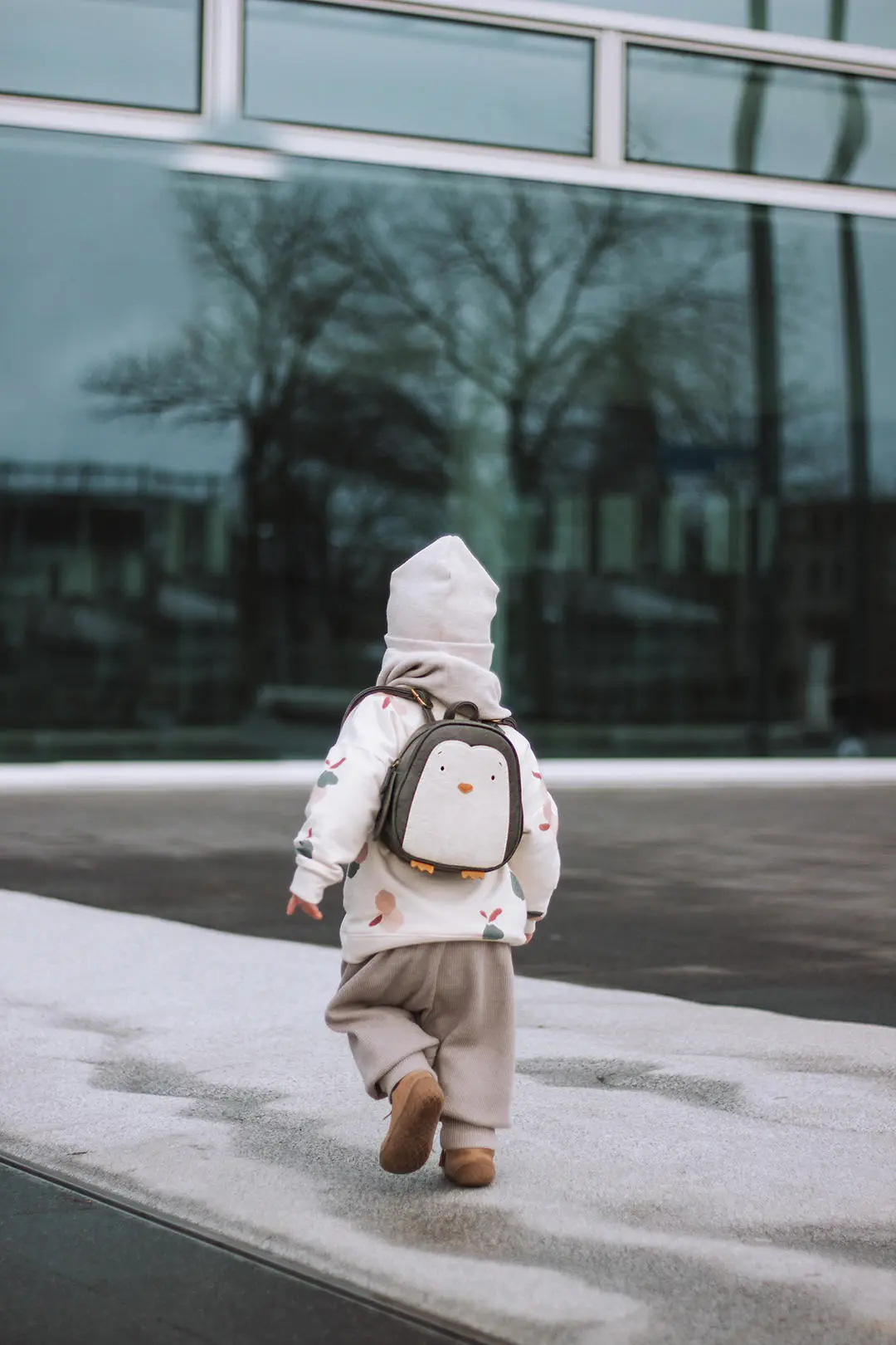 Kuprinė taps mieliausiu vaiko kelionių ir kasdienių nuotykių palydovu. Pingvino dizainas sujungia žaismingumą ir praktiškumą – ji patogi, lengva ir pagaminta iš perdirbtų, veganiškų medžiagų. Sukurta taip, kad lydėtų mažylį į darželį, išvyką ar pas močiutę, kuprinė talpina visus mažus lobius: gertuvę, užkandžių dėžutę ar mylimą žaislą.