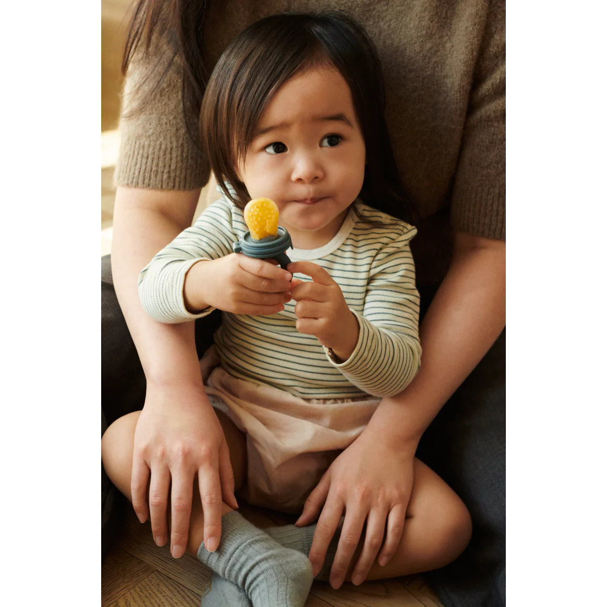 Tobulas pagalbininkas pradedant pažintį su kietu maistu – maitintuvas skatins mažylio smalsumą ir padės saugiai atrasti naujus skonius. Pagamintas iš itin patvaraus tritano ir minkšto silikono, jis turi du skirtingo dydžio perforuotus antgalius, leidžiančius vaikui mėgautis vaisiais ar kitais maisto gabalėliais be užspringimo rizikos.