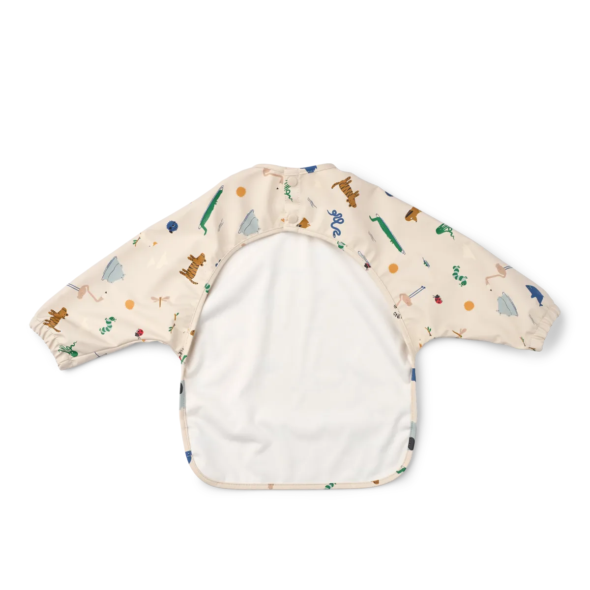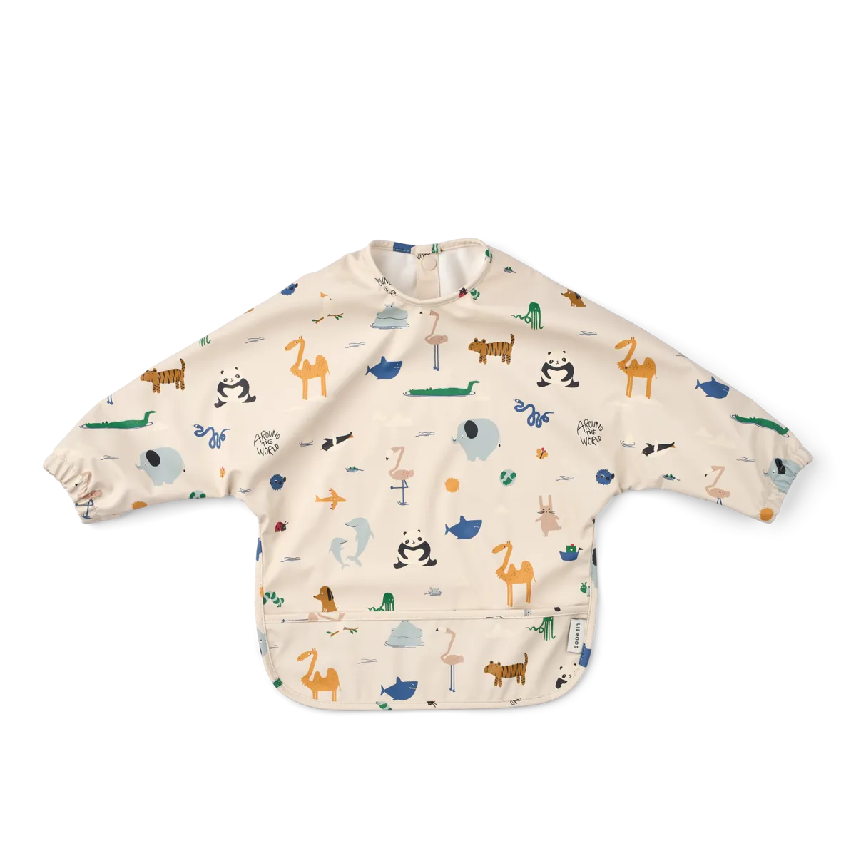 Lengvas ir patogus valgymo apsiaustas padės mažyliui drąsiai mokytis savarankiškai valgyti, o tėvams – ramiau mėgautis valgymo akimirkomis. Ilgos rankovės su elastingais rankogaliais bei priekyje esanti kišenėlė sulaiko maisto likučius.