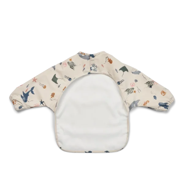 Lengvas ir patogus valgymo apsiaustas padės mažyliui drąsiai mokytis savarankiškai valgyti, o tėvams – ramiau mėgautis valgymo akimirkomis. Ilgos rankovės su elastingais rankogaliais bei priekyje esanti kišenėlė sulaiko maisto likučius.