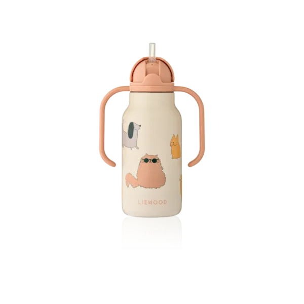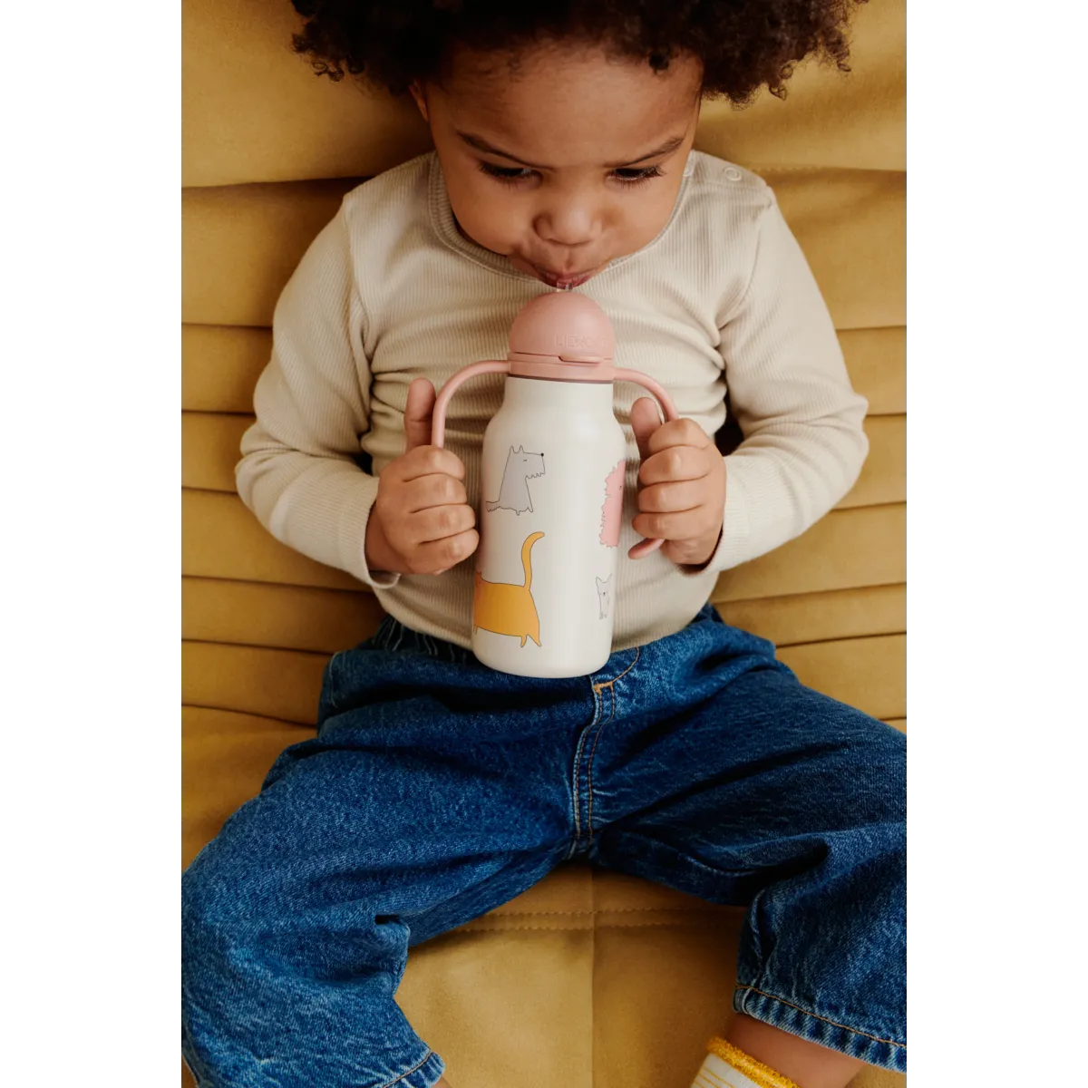 Patogi gertuvė taps puikiu pagalbininku mažyliams, kurie mokosi savarankiškai gerti. Du patogūs dangtelio laikikliai pritaikyti mažoms rankytėms, o integruotas šiaudelis užtikrina lengvą ir saugų naudojimą. Pagaminta iš 80 % perdirbto nerūdijančio plieno, ši gertuvė yra draugiška aplinkai ir itin patvari.