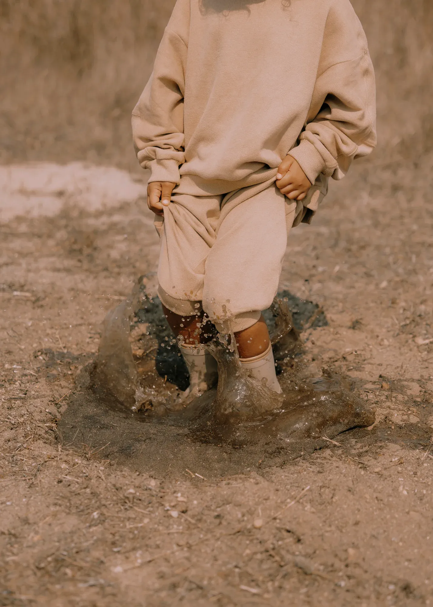 Šokinėjimas per balas dar niekada nebuvo toks smagus! Šie švelnių atspalvių guminiai batai suteikia vaikui laisvę dūkti lauke net ir lietingiausią dieną, o vandeniui atspari medžiaga saugo mažas kojeles.
